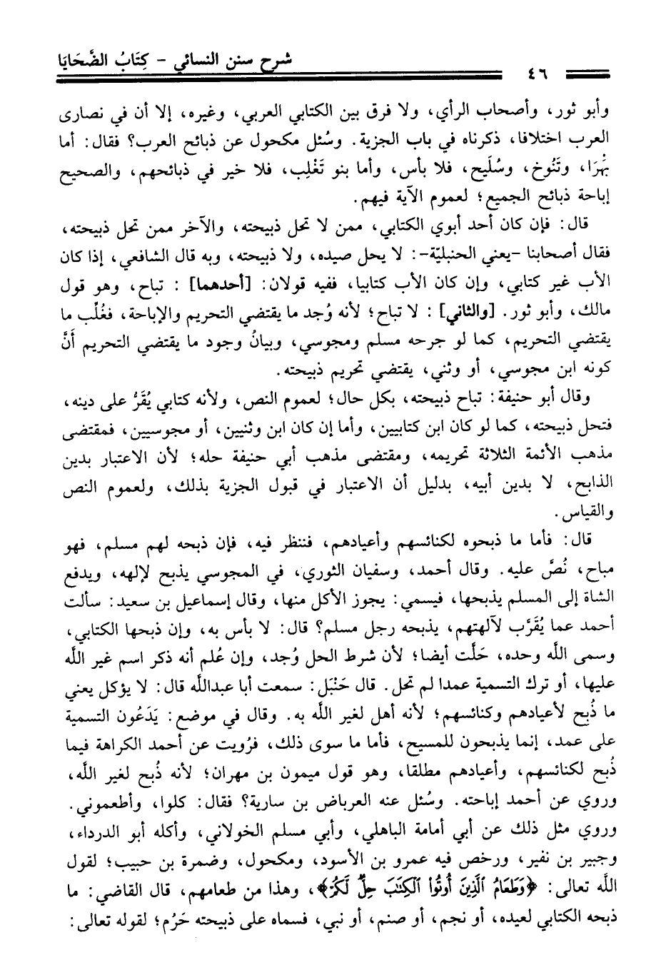 وأبو ثور، وأصحاب الرأي، ولا فرق بين الكتابي العربي، وغيره، إلا أن فِي نصارى العرب اختلافا، ذكرناه فِي باب الجزية. وسُئل مكحول عن ذبائح العرب؟ فَقَالَ: أما بَهْرَا، وتَنُوخ، وسُلَيح، فلا بأس، وأما بنو تَغْلِب، فلا خير فِي ذبائحهم، والصحيح إباحة ذبائح الجميع؛ لعموم الآية فيهم.