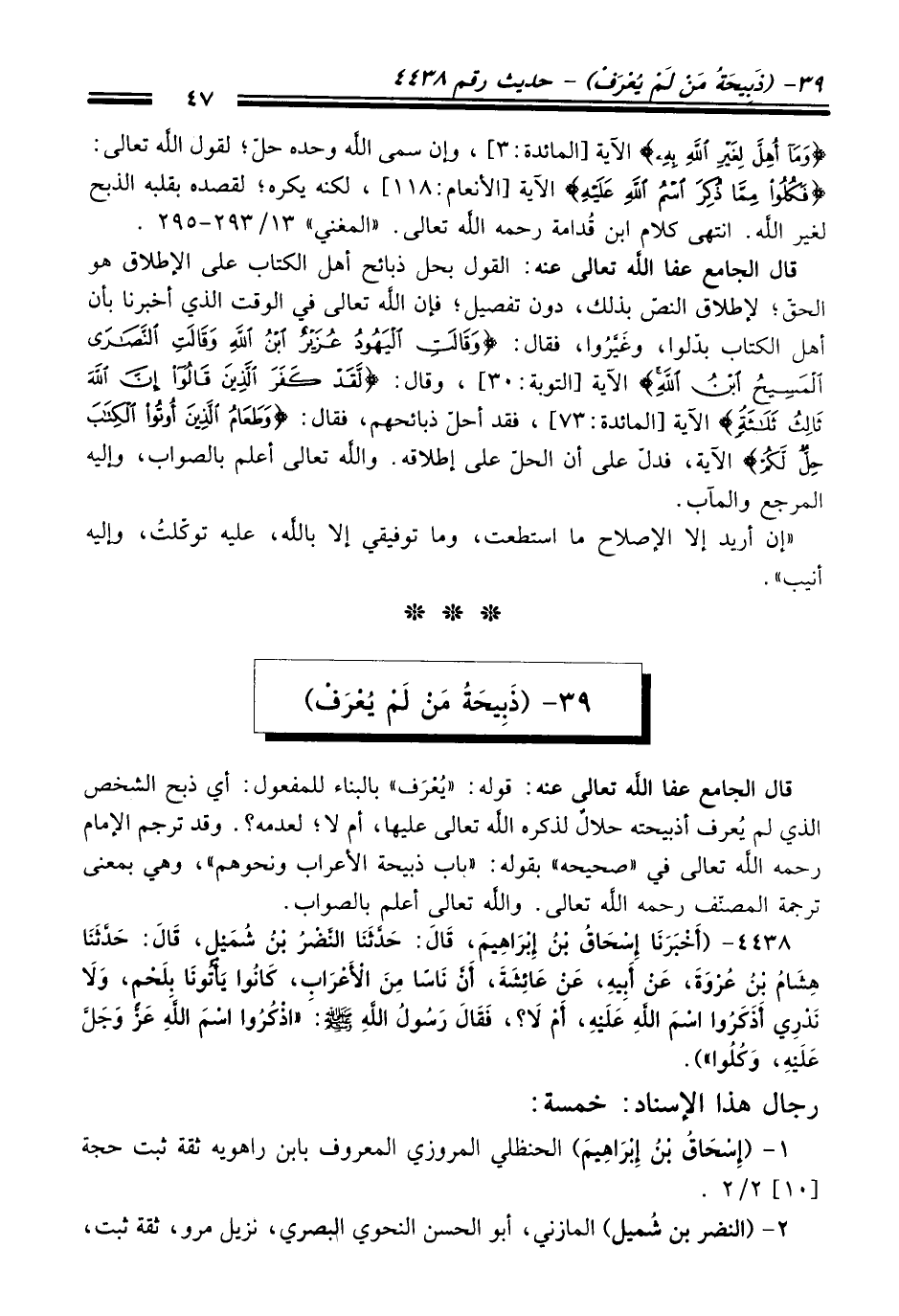 39 - (ذَبِيحَةُ مَنْ لَمْ يُعْرَفْ)