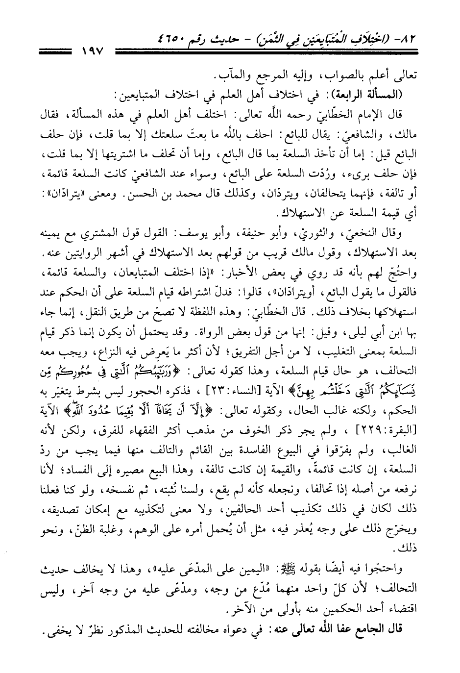 (المسألة الرابعة): فِي اختلاف أهل العلم فِي اختلاف المتبايعين: