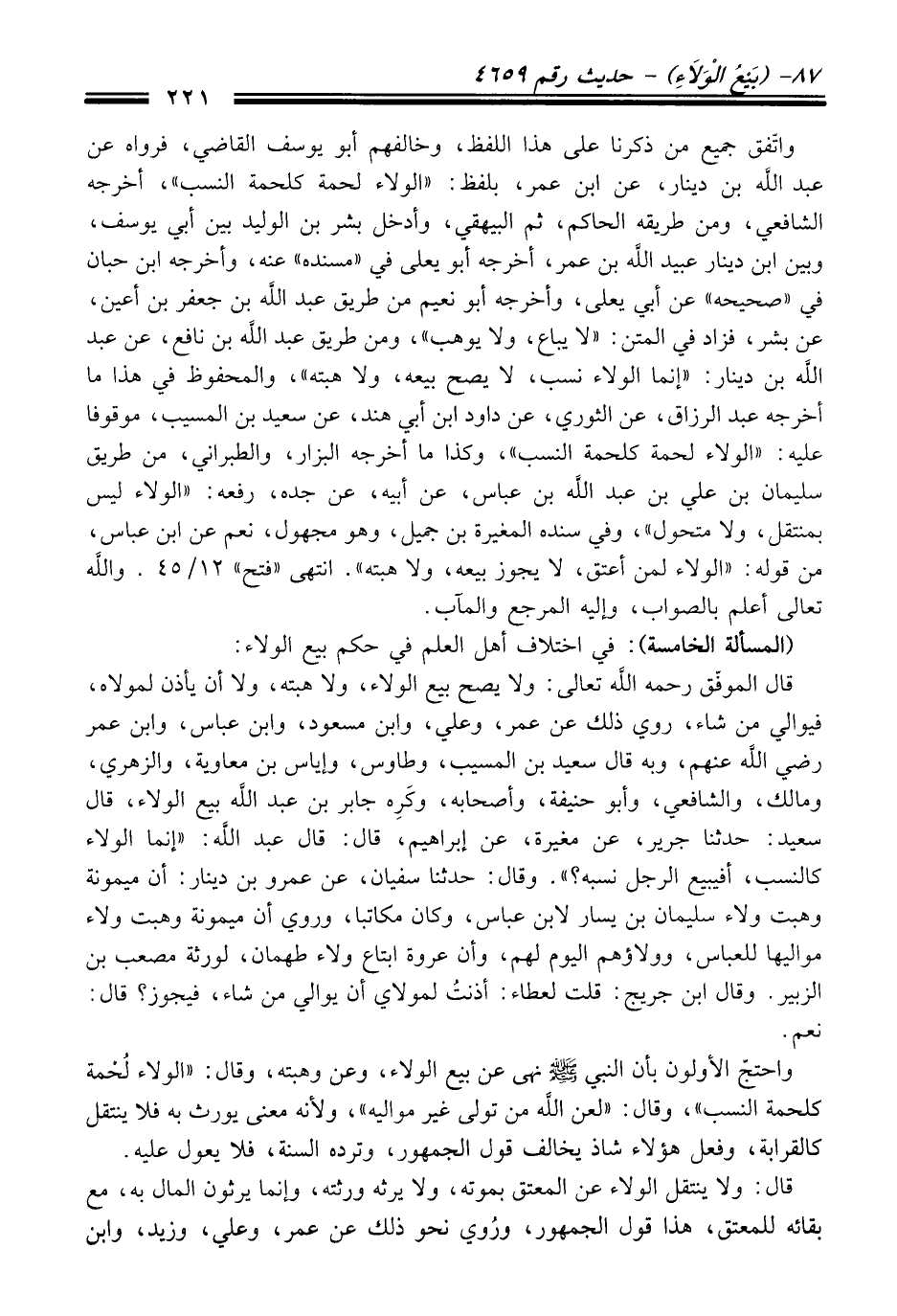 (المسألة الخامسة): فِي اختلاف أهل العلم فِي حكم بيع الولاء: