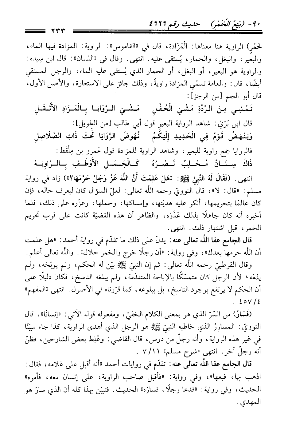 خَمْرٍ) الراوية هنا معناها: الْمَزَادة، قَالَ فِي "القاموس": الراوية: المزادة فيها الماء، والبعير، والبغل، والحمار، يُستقى عليه. انتهى. وَقَالَ فِي "اللسان": قَالَ ابن سِيده: والراوية هو البعير، أو البغل، أو الحمار الذي يُستقى عليه الماء، والرجل المستقي أيضًا، قَالَ: والعامة تسمّي المزادة راويةً، وذلك جائز عَلَى الاستعارة، والأصل الأول، قَالَ أبو الجم [منْ الرجز]: