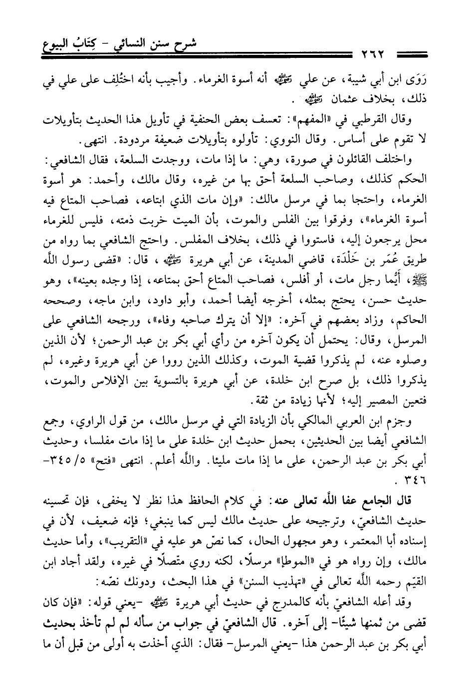 وجزم ابن العربي المالكي بأن الزيادة التي فِي مرسل مالك، منْ قول الراوي، وجمع الشافعيّ أيضا بين الحديثين، بحمل حديث ابن خلدة عَلَى ما إذا مات مفلسا، وحديث أبي بكر بن عبد الرحمن، عَلَى ما إذا مات مليئا. والله أعلم. انتهى "فتح" 5/ 345 - 346.
