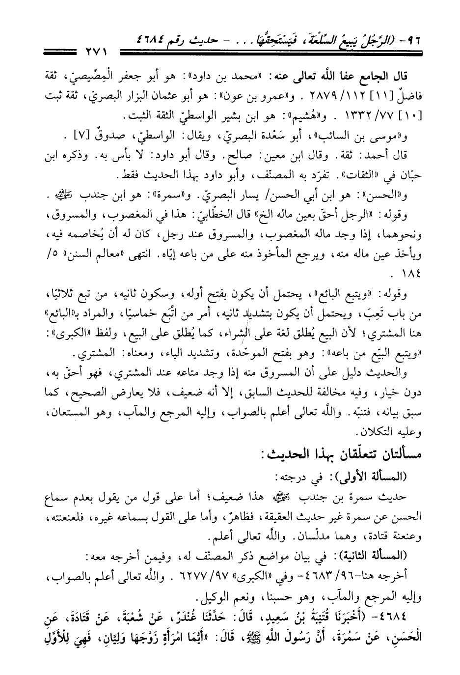أخرجه هنا -96/ 4683 - وفي "الكبرى" 97/ 6277. والله تعالى أعلم بالصواب، وإليه المرجع والمآب، وهو حسبنا، ونعم الوكيل.