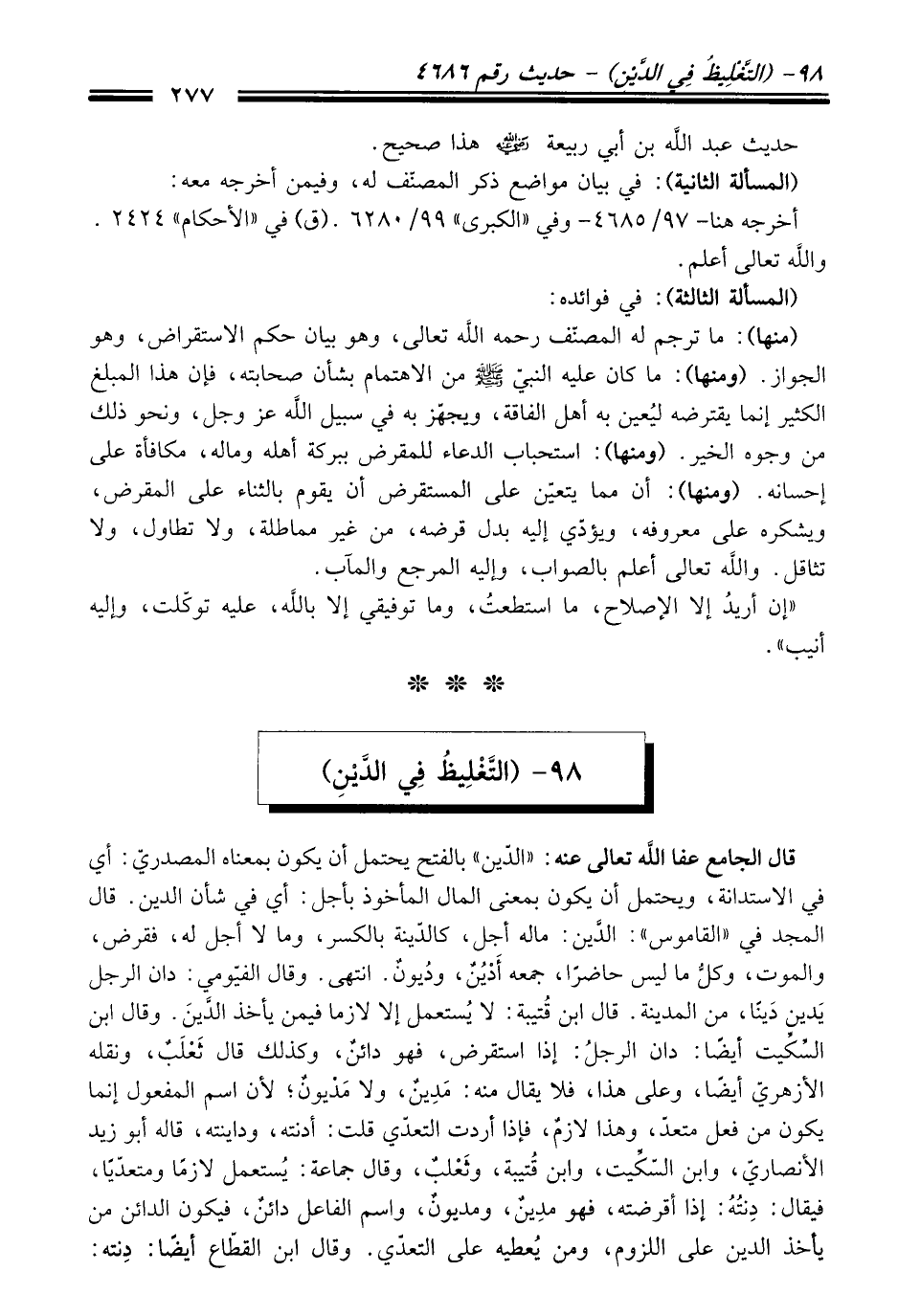 98 - (التَّغْلِيظُ فِي الدَّيْنِ)