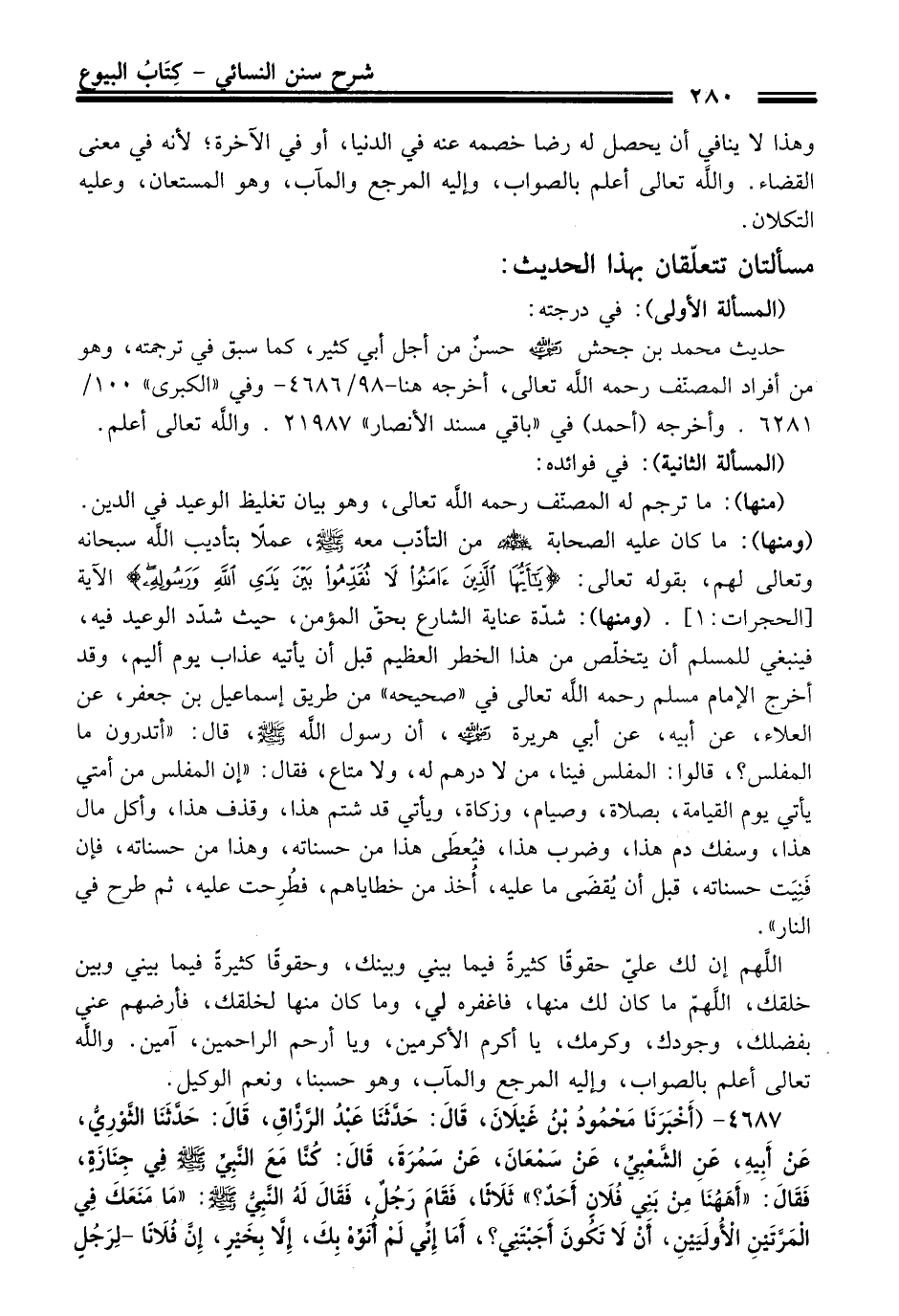 حديث محمد بن جحش -رضي الله عنه- حسنٌ منْ أجل أبي كثير، كما سبق فِي ترجمته، وهو منْ أفراد المصنّف رحمه الله تعالى، أخرجه هنا -98/ 4686 - وفي "الكبرى" 100/ 6281. وأخرجه (أحمد) فِي "باقي مسند الأنصار" 21987. والله تعالى أعلم.
