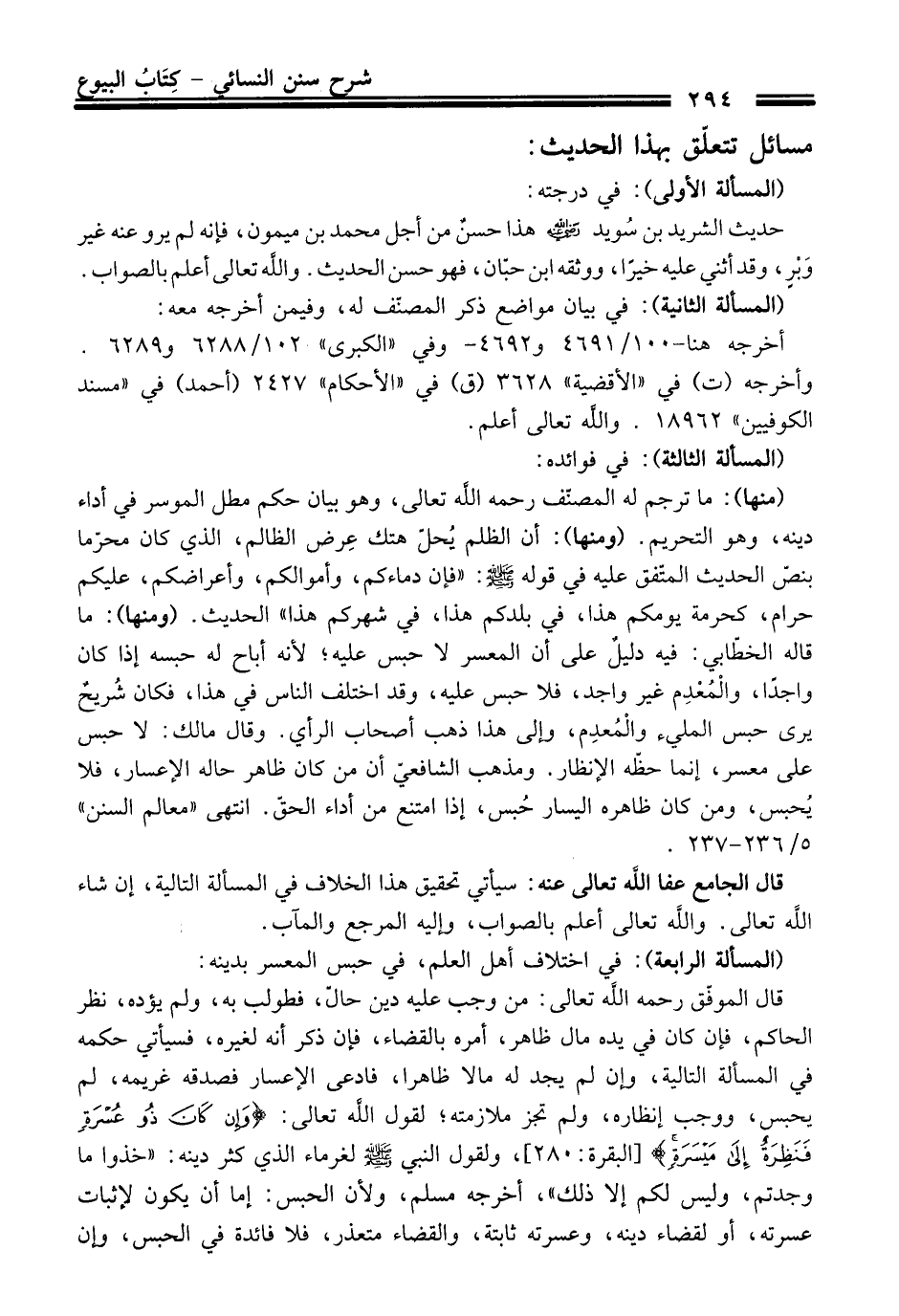 (المسألة الرابعة): فِي اختلاف أهل العلم، فِي حبس المعسر بدينه: