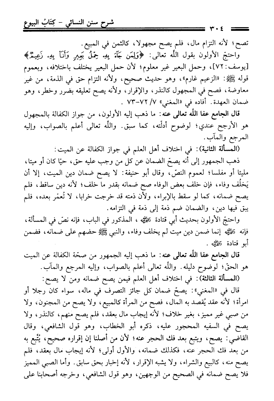 قَالَ الجامع عفا الله تعالى عنه: ما ذهب إليه الأولون، منْ جواز الكفالة بالمجهول هو الأرجح عندي؛ لوضوح أدلّته، كما سبق. والله تعالى أعلم بالصواب، وإليه المرجع والمآب.
