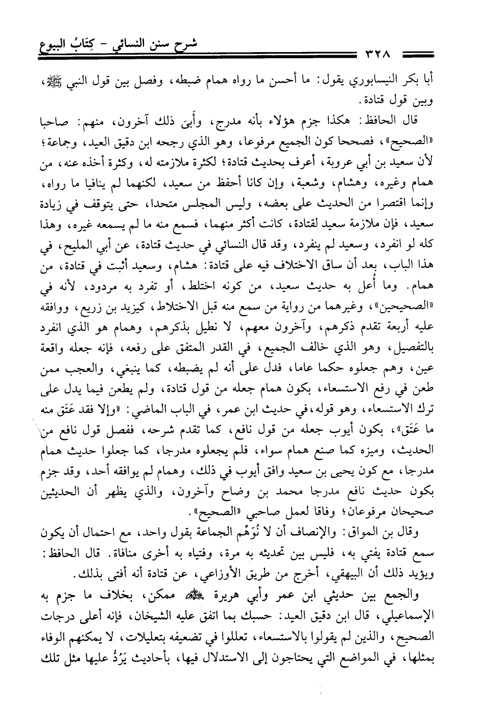 أبا بكر النيسابوري يقول: ما أحسن ما رواه همام ضبطه، وفصل بين قول النبيّ -صلى الله عليه وسلم-، وبين قول قتادة.