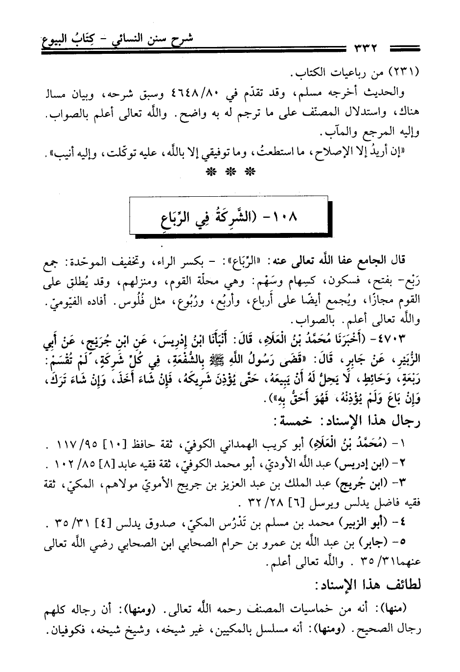 108 - (الشَّرِكَةُ فِي الرِّبَاعِ)