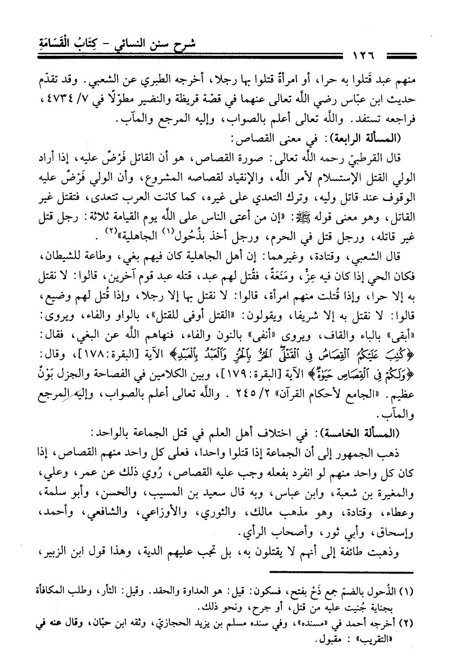 (المسألة الخامسة): فِي اختلاف أهل العلم فِي قتل الجماعة بالواحد: