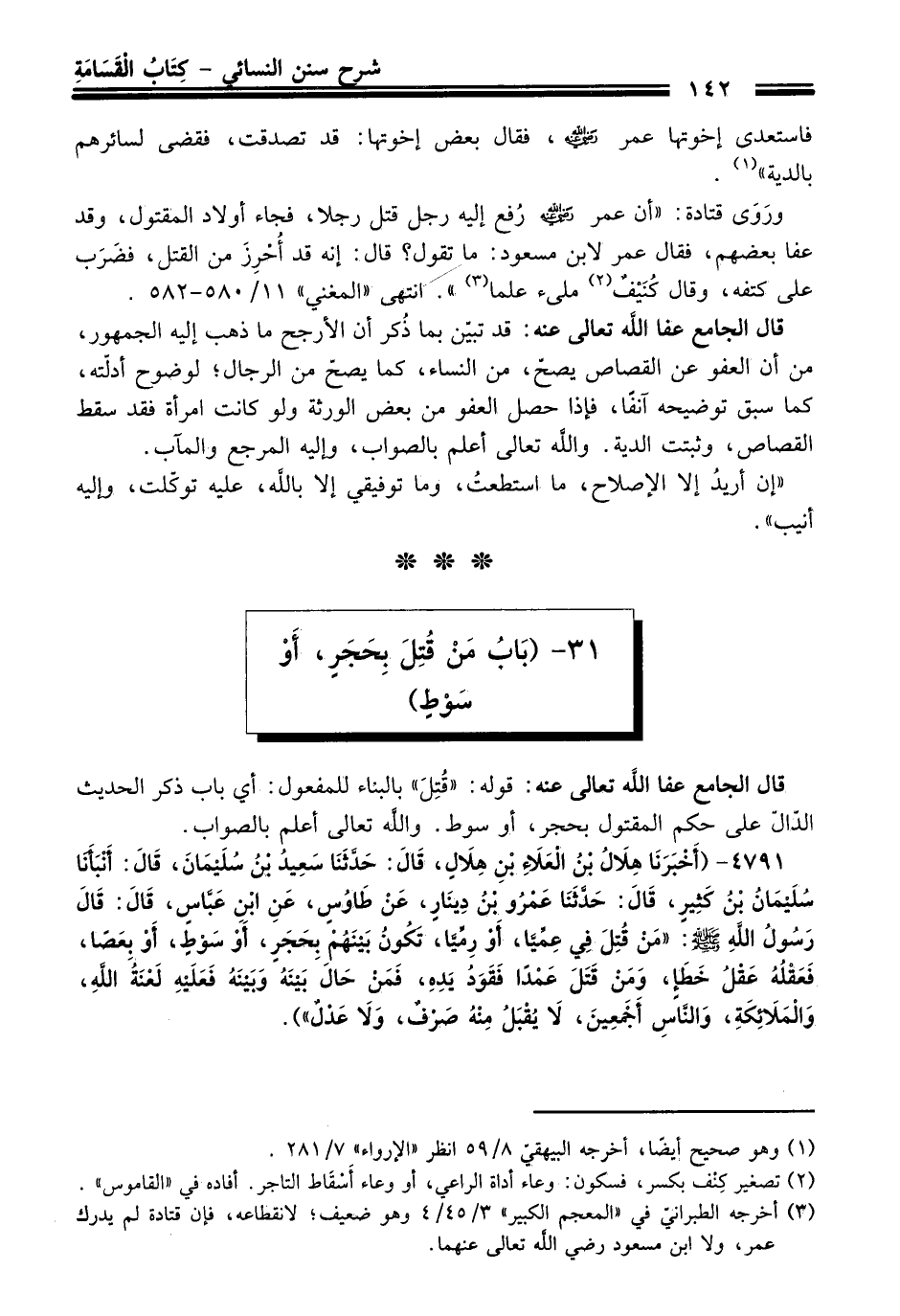 31 - (بَابُ مَنْ قُتِلَ بِحَجَرٍ، أَوْ سَوْطٍ)
