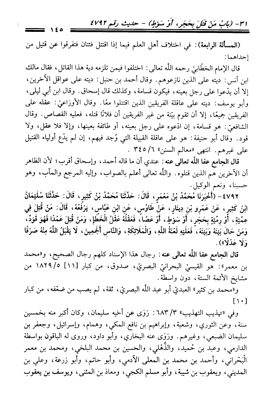 قَالَ الجامع عفا الله تعالى عنه: عندي أن ما قاله أحمد، وإسحاق أقرب؛ لأن الظاهر أن الآخرين هم الذين قتلوه. والله تعالى أعلم بالصواب، وإليه المرجع والمآب، وهو حسبنا، ونعم الوكيل.