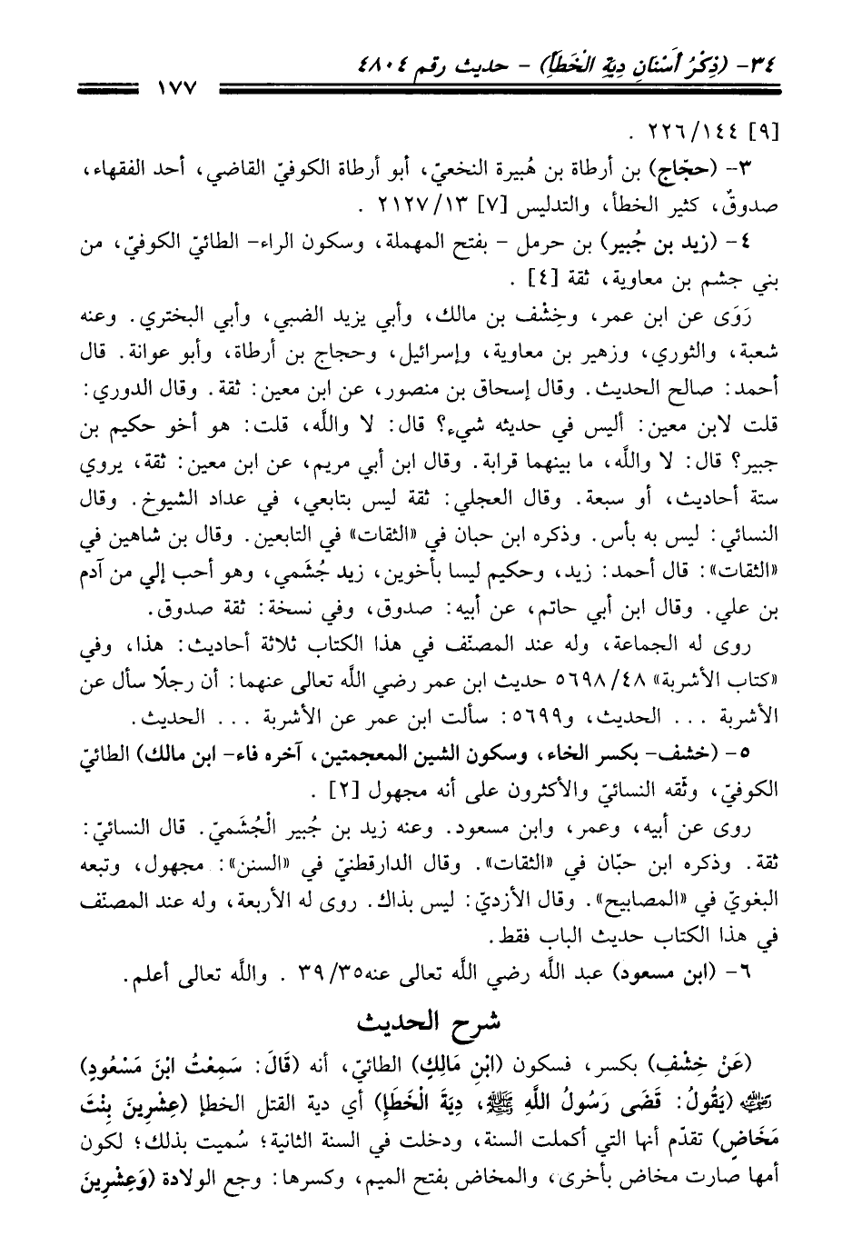 3 - (حجّاج) بن أرطاة بن هُبيرة النخعيّ، أبو أرطاة الكوفيّ القاضي، أحد الفقهاء، صدوقٌ، كثير الخطأ، والتدليس [7] 13/ 2127.
