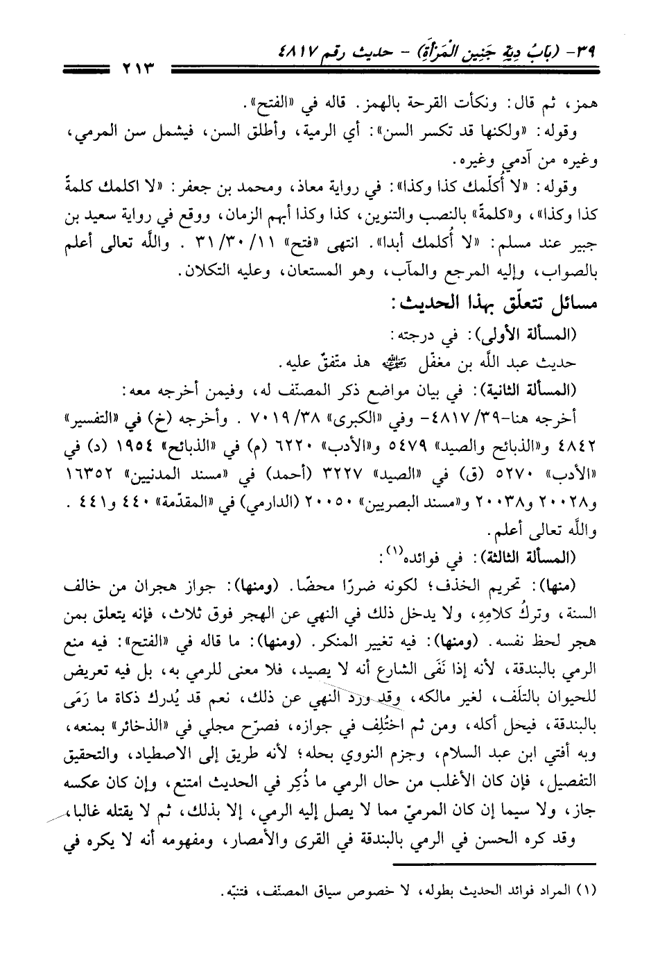 مسائل تتعلّق بهذا الْحَدِيث: