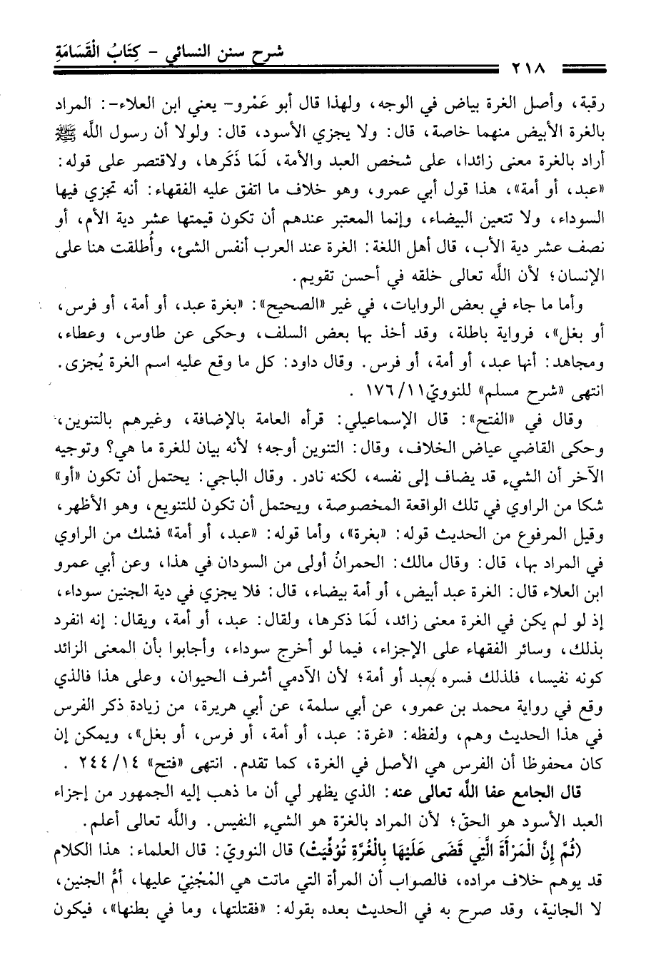قَالَ الجامع عفا الله تعالى عنه: الذي يظهر لي أن ما ذهب إليه الجمهور منْ إجزاء العبد الأسود هو الحقّ؛ لأن المراد بالغرّة هو الشيء النفيس. والله تعالى أعلم.