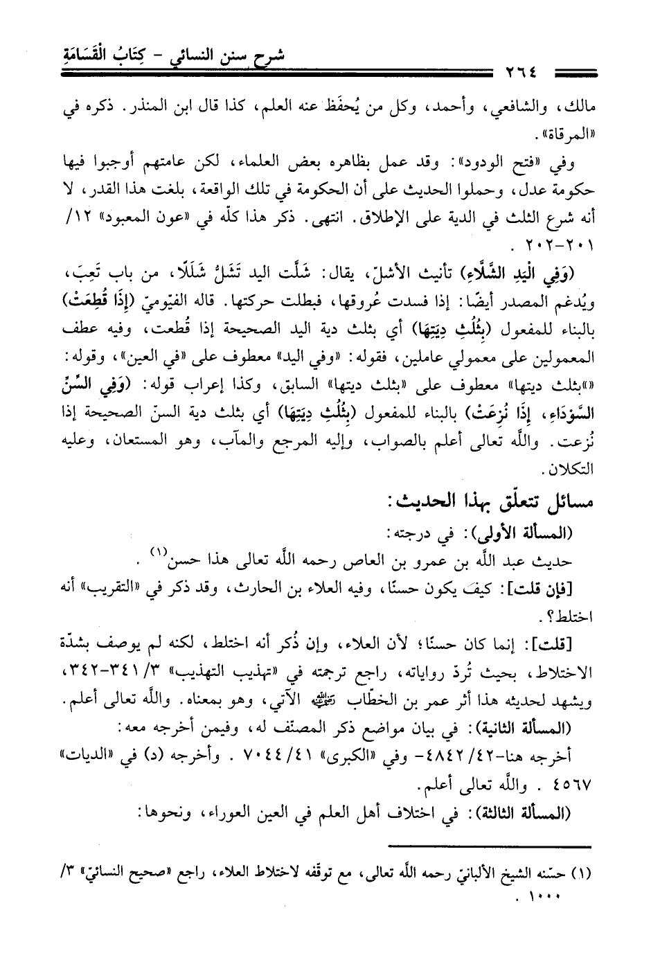 (¬1) حسنه الشيخ الألبانيّ رحمه الله تعالى، مع توقّفه لاختلاط العلاء، راجع "صحيح النسائيّ" 3/ 1000.