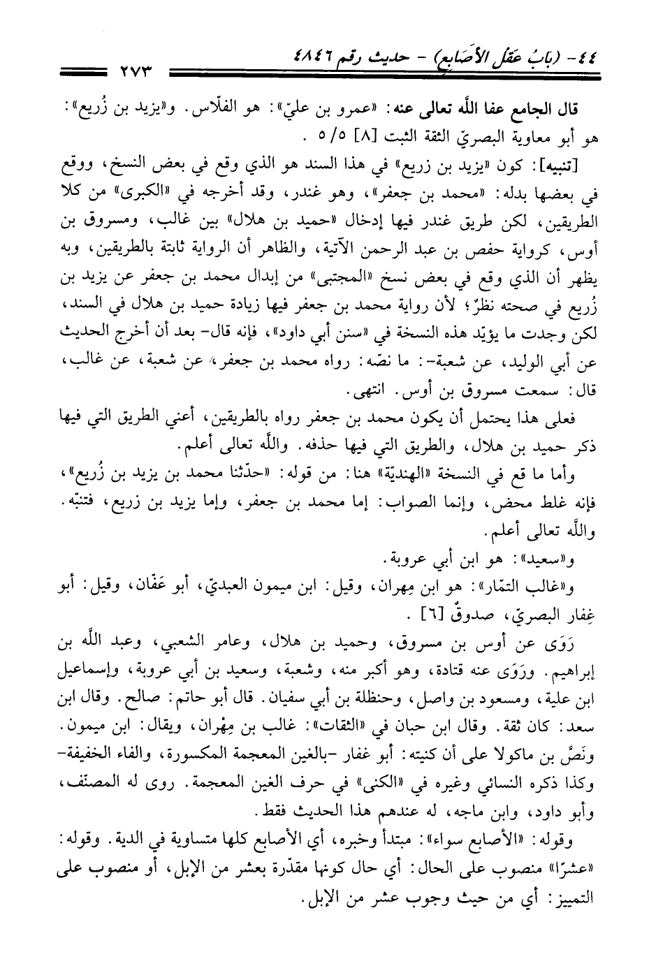 قَالَ الجامع عفا الله تعالى عنه: "عمرو بن عليّ": هو الفلّاس. و"يزيد بن زُريع": هو أبو معاوية البصريّ الثقة الثبت [8] 5/ 5.