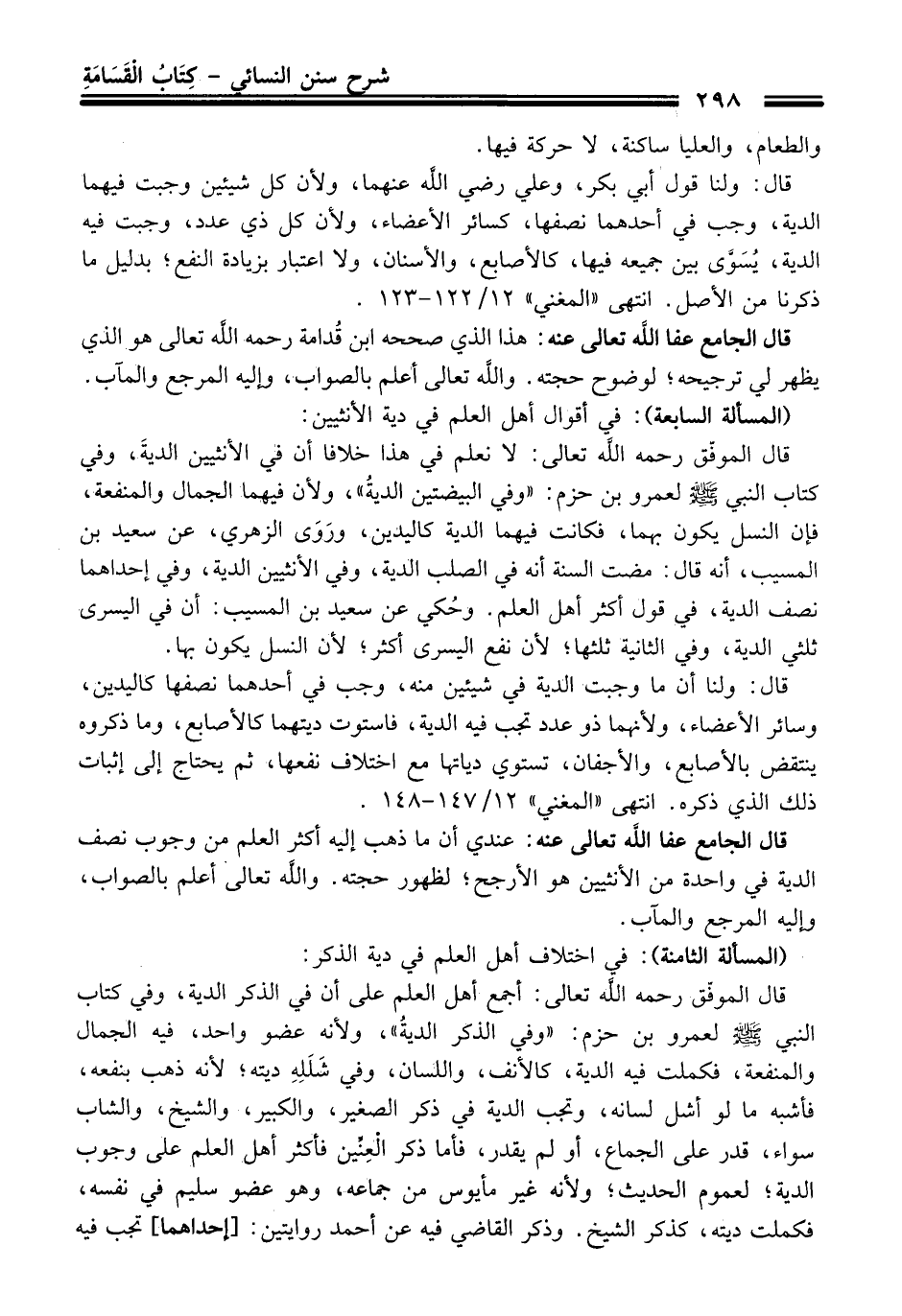 قَالَ الجامع عفا الله تعالى عنه: هَذَا الذي صححه ابن قُدامة رحمه الله تعالى هو الذي يظهر لي ترجيحه؛ لوضوح حجته. والله تعالى أعلم بالصواب، وإليه المرجع والمآب.