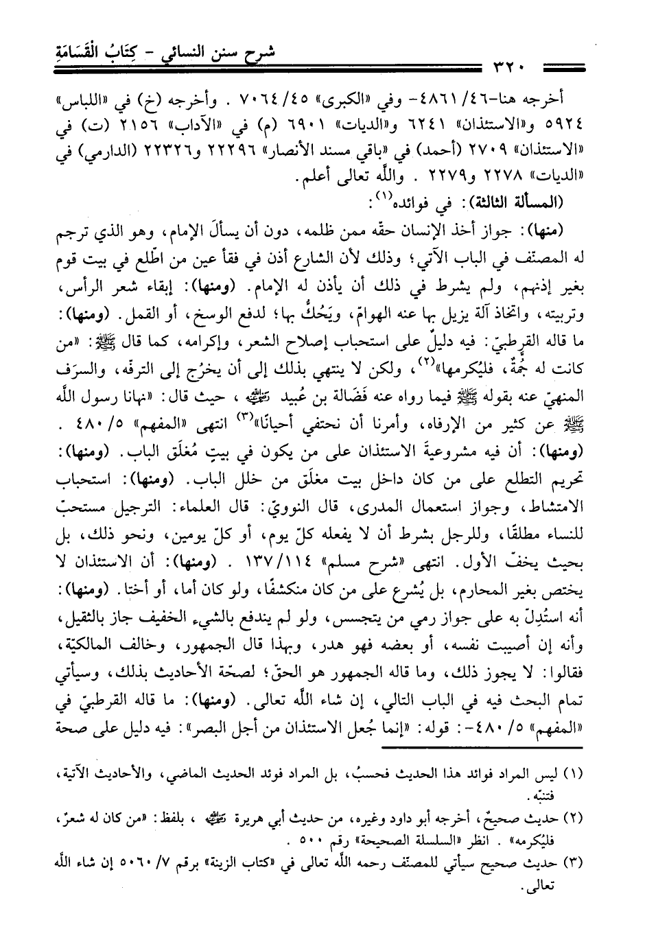 (¬2) حديث صحيح، أخرجه أبو داود وغيره، منْ حديث أبي هريرة -رضي الله عنه-، بلفظ: "منْ كَانَ له شعرٌ، فليُكرمه". انظر "السلسلة الصحيحة" رقم 500.