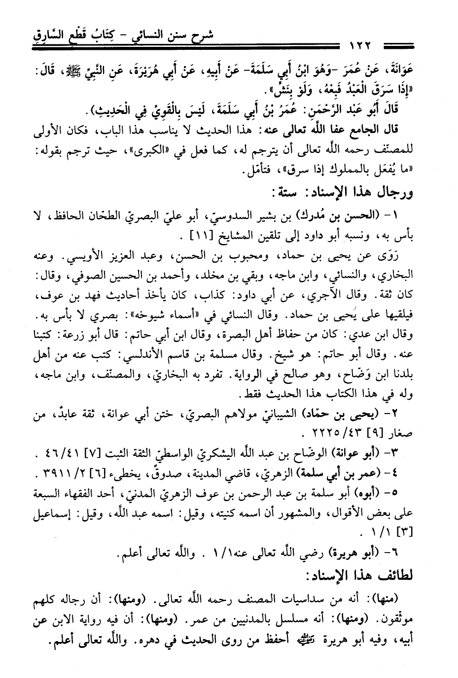 قَالَ أَبُو عَبْدِ الرَّحْمَنِ: عُمَرُ بْنُ أَبِي سَلَمَةَ، لَيْسَ بِالْقَوِيِّ فِي الْحَدِيثِ).