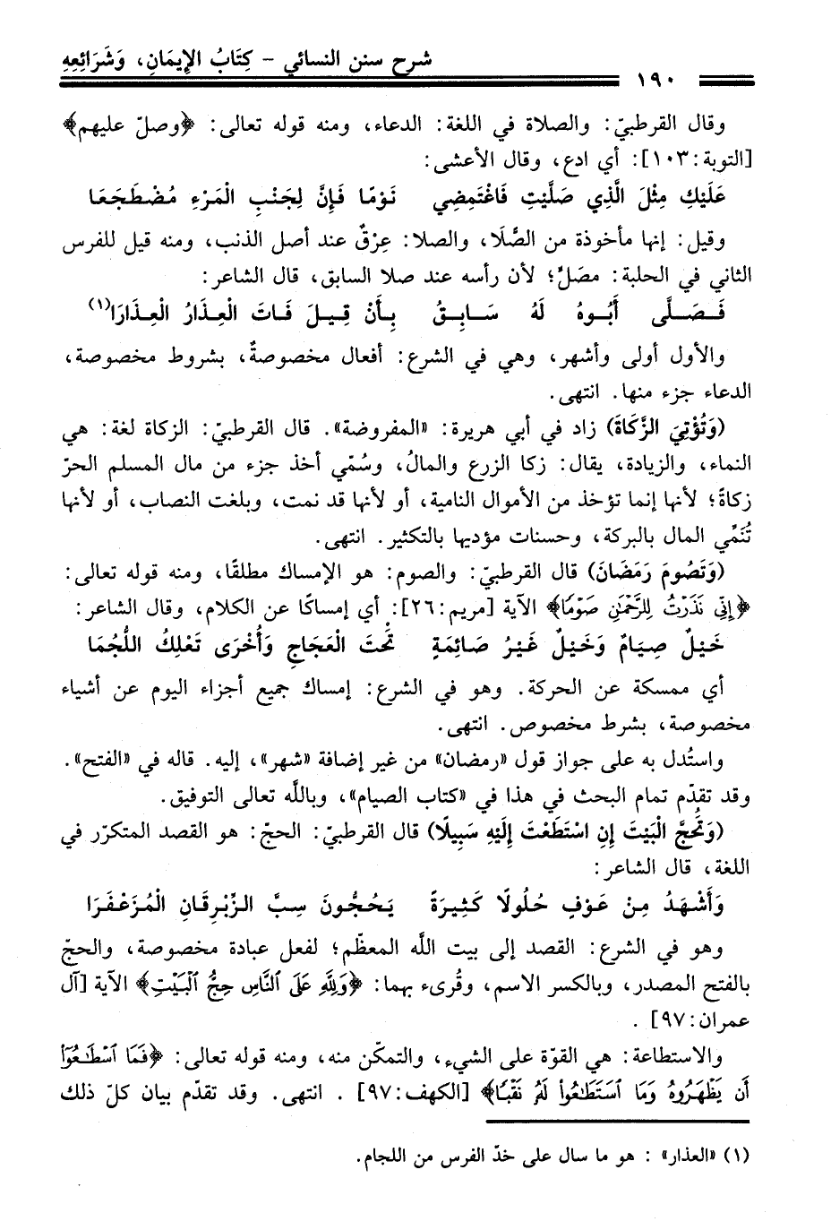 وَقَالَ القرطبيّ: والصلاة فِي اللغة: الدعاء، ومنه قوله تعالى: {وَصَلِّ عَلَيْهِمْ} [التوبة: 103]: أي ادع، وَقَالَ الأعشى: