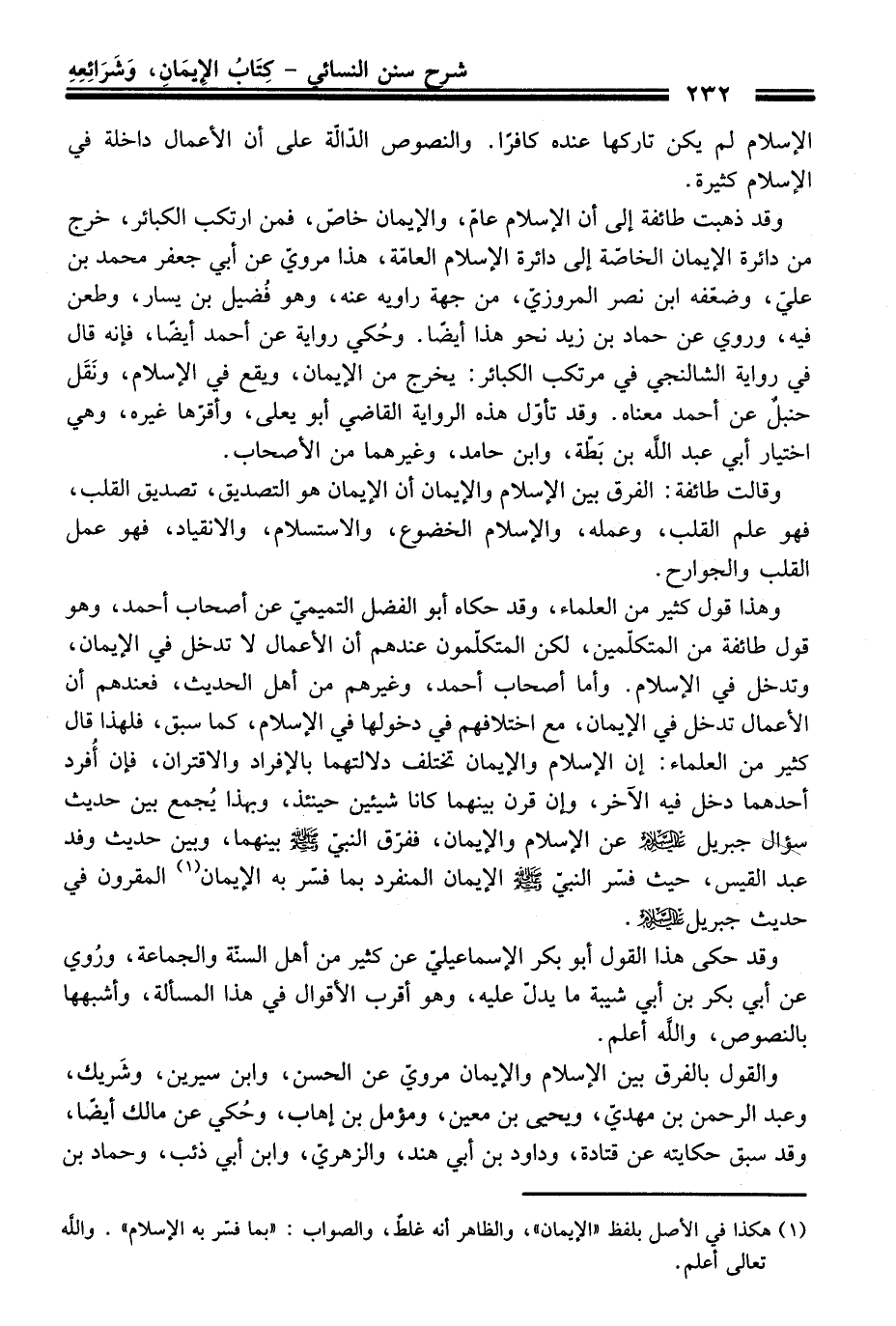 (¬1) هكذا فِي الأصل بلفظ "الإيمان"، والظاهر أنه غلطٌ، والصواب: "بما فسّر به الإسلام". والله تعالى أعلم.