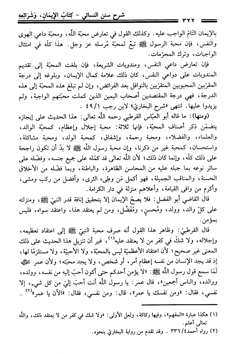 بالإيمان التّامّ الواجب عليه. وكذلك القول فِي تعارض محبّة الله، ومحبة داعي الهوى والنفس، فإن محبّة الرسول -صلى الله عليه وسلم- تبعٌ لمحبّة مُرسله عز وجل. هَذَا كلّه فِي امتثال الواجبات، وترك المحرّمات.