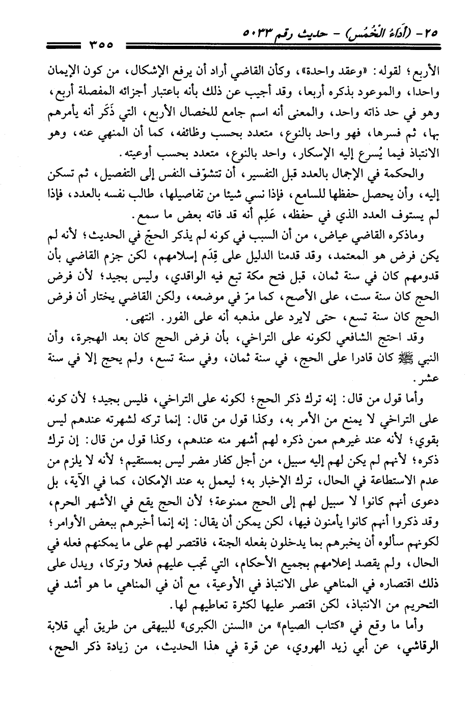 وما ذكره القاضي عياض، منْ أن السبب فِي كونه لم يذكر الحجّ فِي الْحَدِيث؛ لأنه لم يكن فرض هو المعتمد، وَقَدْ قدمنا الدليل عَلَى قِدَم إسلامهم، لكن جزم القاضي بأن قدومهم كَانَ فِي سنة ثمان، قبل فتح مكة تبع فيه الواقدي، وليس بجيد؛ لأن فرض الحجّ كَانَ سنة ست، عَلَى الأصح، كما مرّ فِي موضعه، ولكن القاضي يختار أن فرض الحجّ كَانَ سنة تسع، حَتَّى لا يرد عَلَى مذهبه أنه عَلَى الفور. انتهى.