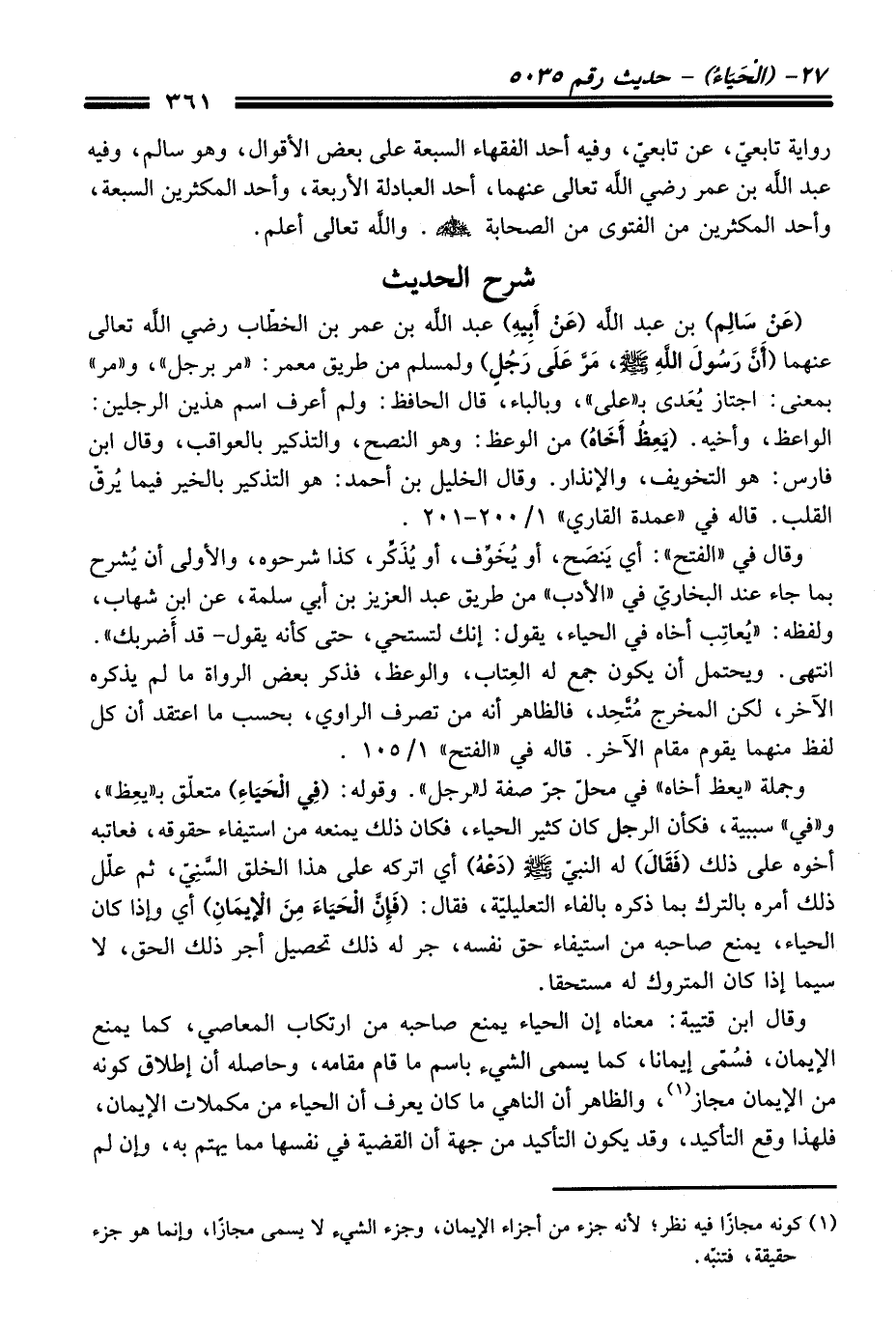 (¬1) كونه مجازًا فيه نظر؛ لأنه جزء منْ أجزاء الإيمان، وجزء الشيء لا يسمى مجازًا، وإنما هو جزء حقيقة، فتنبّه.