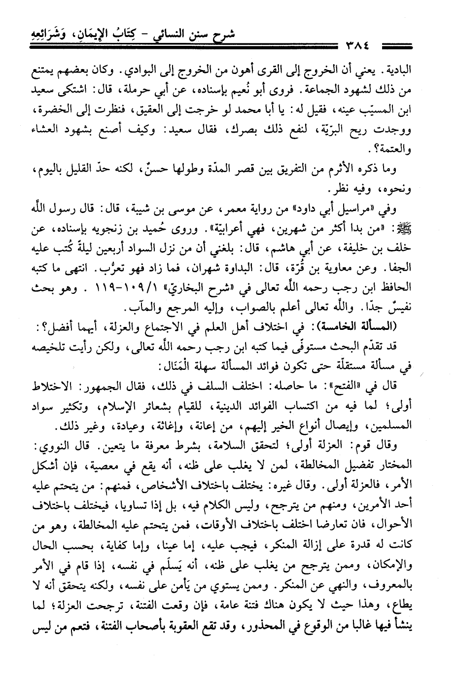 (المسألة الخامسة): فِي اختلاف أهل العلم فِي الاجتماع والعزلة، أيهما أفضل؟: