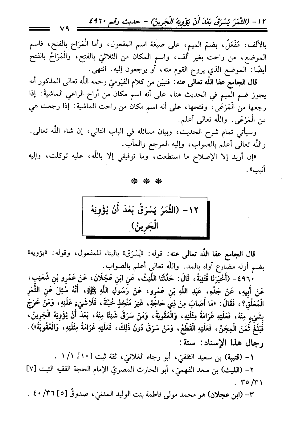 12 - (الثَّمَرِ يُسْرَقُ بَعْدَ أَنْ يُؤْوِيَهُ الْجَرِينُ)