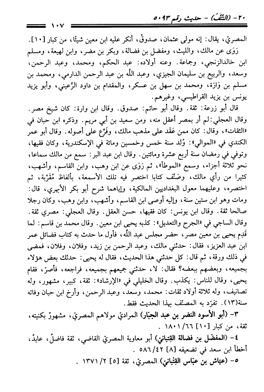 3 - (أبو الأسود النضر بن عبد الجبّار) المراديّ مولاهم المصريّ، مشهورٌ بكنيته، ثقة، منْ كبار [10] 66/ 1801.