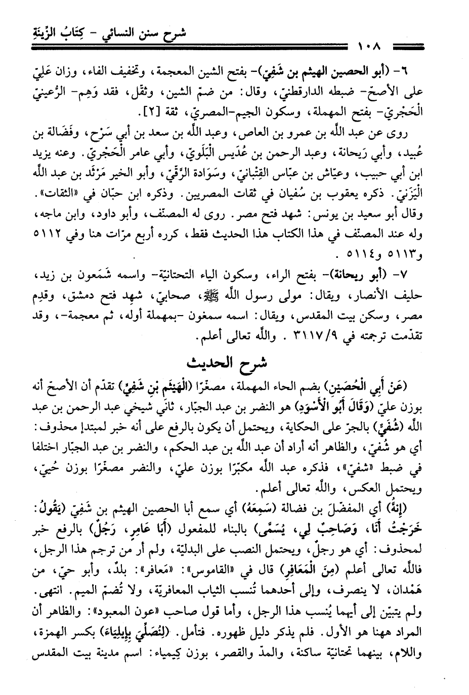 6 - (أبو الحصين الهيثم بن شَفِيّ) -بفتح الشين المعجمة، وتخفيف الفاء، وزان علِيّ عَلَى الأصحّ- ضبطه الدارقطنيّ، وَقَالَ: منْ ضمّ الشين، وثقّل، فقد وَهِم -الرُّعينيّ الْحَجْريّ -بفتح المهملة، وسكون الجيم- المصريّ، ثقة [2].