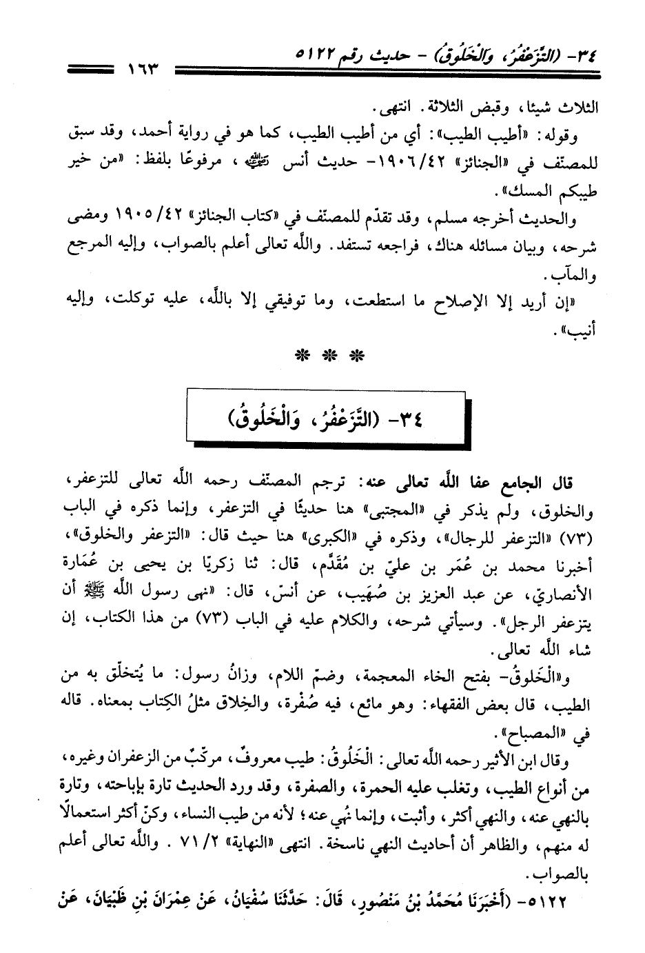34 - (التَّزَعْفُرِ، وَالْخَلُوقِ)
