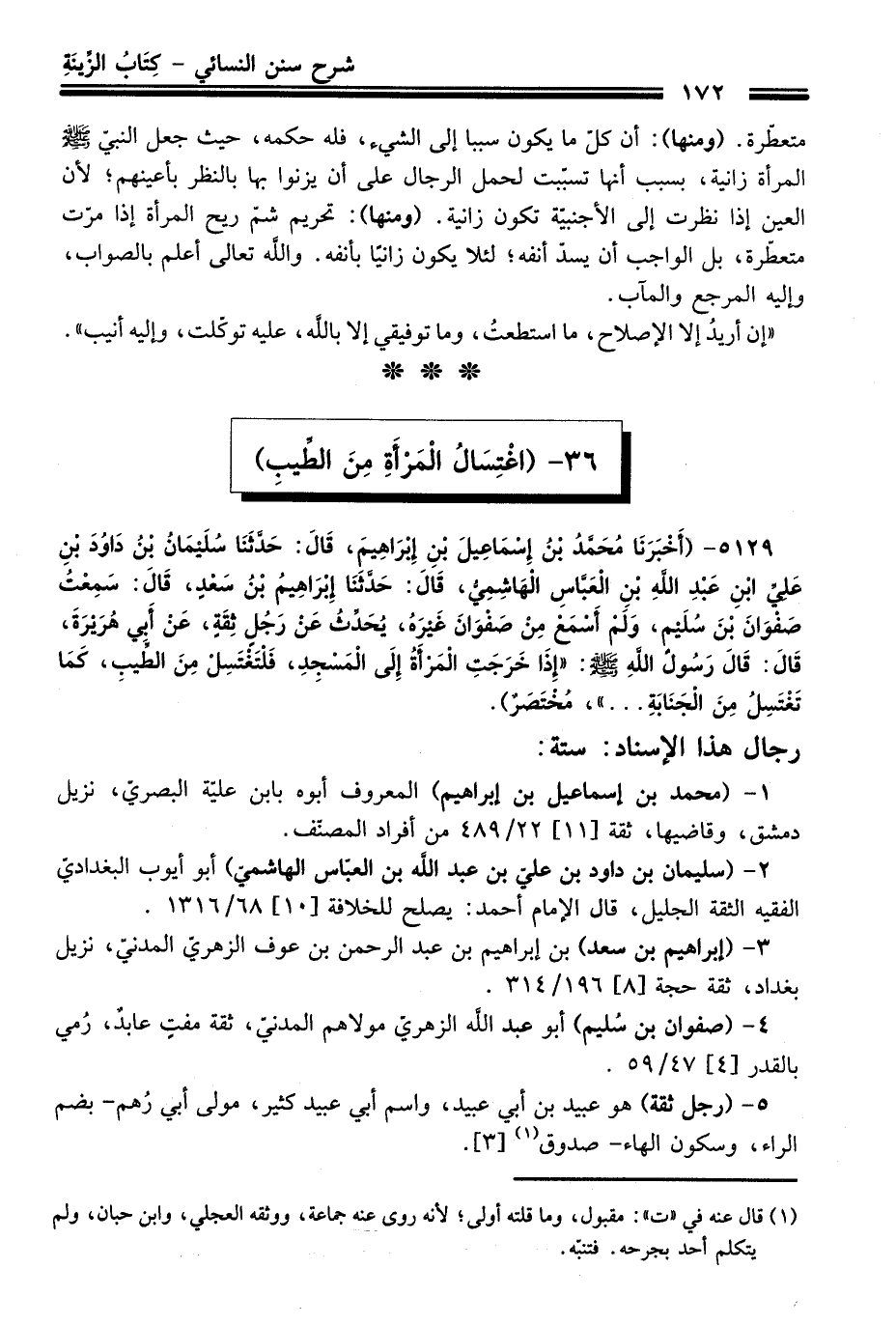 5129 - (أَخْبَرَنَا مُحَمَّدُ بْنُ إِسْمَاعِيلَ بْنِ إِبْرَاهِيمَ، قَالَ: حَدَّثَنَا سُلَيْمَانُ بْنُ دَاوُدَ بْنِ عَلِيِّ بْنِ عَبْدِ اللَّهِ بْنِ الْعَبَّاسِ الْهَاشِمِيِّ، قَالَ: حَدَّثَنَا إِبْرَاهِيمُ بْنُ سَعْدٍ، قَالَ: سَمِعْتُ صَفْوَانَ بْنَ سُلَيْمٍ، وَلَمْ أَسْمَعْ مِنْ صَفْوَانَ غَيْرَهُ، يُحَدِّثُ عَنْ رَجُلٍ ثِقَةٍ، عَنْ أَبِي هُرَيْرَةَ، قَالَ: قَالَ رَسُولُ اللَّهِ -صلى الله عليه وسلم-: "إِذَا خَرَجَتِ الْمَرْأَةُ إِلَى الْمَسْجِدِ، فَلْتَغْتَسِلْ مِنَ الطِّيبِ، كَمَا تَغْتَسِلُ مِنَ الْجَنَابَةِ ... ". مُخْتَصَرٌ).
