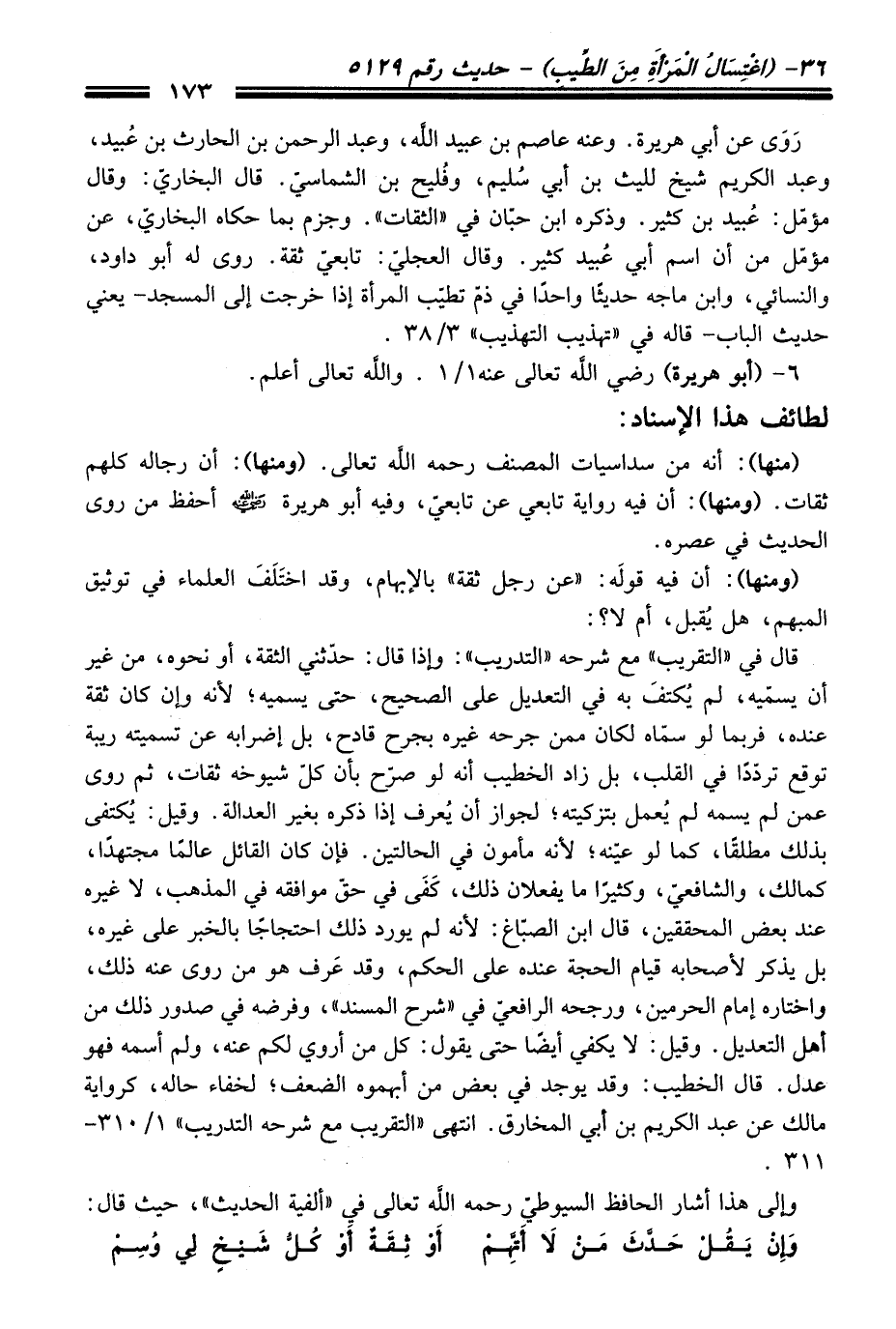 (منها): أنه منْ سداسيات المصنّف رحمه الله تعالى. (ومنها): أن رجاله كلهم ثقات. (ومنها): أن فيه رواية تابعيّ عن تابعيّ، وفيه أبو هريرة -رضي الله عنه- أحفظ منْ رَوَى الْحَدِيث فِي عصره.