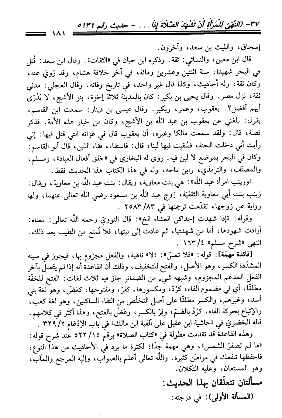 مسألتان تتعلّقان بهذا الْحَدِيث: