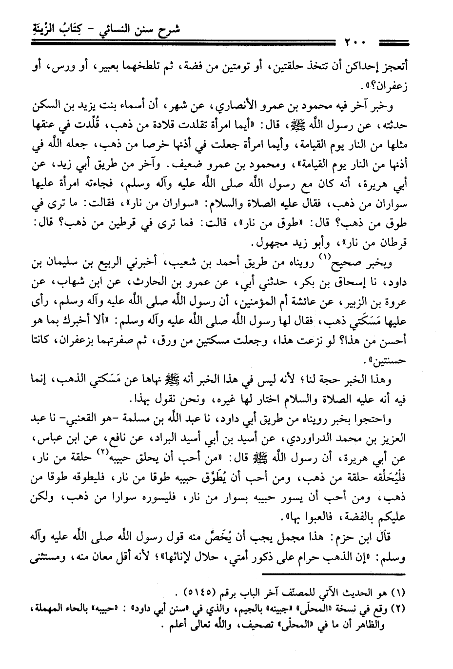 (¬2) وقع فِي نسخة "المحلّى" "جبينه" بالجيم، والذي فِي "سنن أبي داود": "حبيبه" بالحاء المهملة، والظاهر أن ما فِي "المحلّى" تصحيف، والله تعالى أعلم.