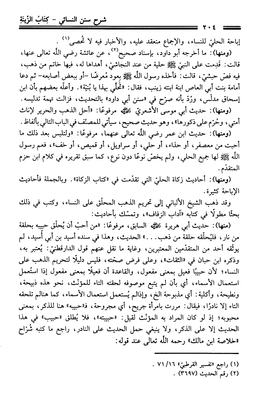 (ومنها): أحاديث زكاة الحليّ التي تقدّمت فِي "كتاب الزكاة". وبالجملة فأحاديث الإباحة كثيرة.
