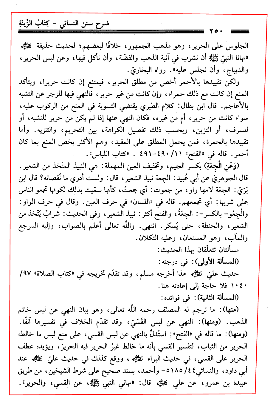 مسألتان تتعلّقان بهذا الْحَدِيث: