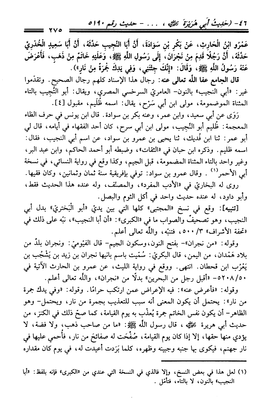 (¬1) لعل هَذَا فِي بعض النسخ، وإلا فالذي فِي النسخة التي عندي منْ "الكبرى" فإنه بلفظ: "أبا النجيب" بالنون، لا بالتاء، فتأمّل.