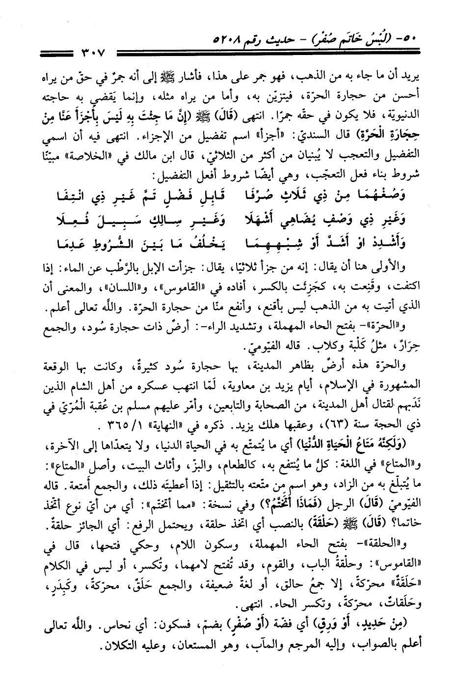 (وَلَكِنَّهُ مَتَاعُ الْحَيَاةِ الدُّنْيَا) أي ما يُتمتّع به فِي الحياة الدنيا، ولا يتعدّاها إلى الآخرة، و"المتاع" فِي اللغة: كل ما يُنتفع به، كالطعام، والبزّ، وأثاث البيت، وأصل "المتاع": ما يُتبلّغ به منْ الزاد، وهو اسم مِن متّعته بالتثقيل: إذا أعطيتَه ذلك، والجمع أمتعة. قاله الفيّوميّ (قَالَ) الرجل (فَمَاذَا أَتَخَتَّمُ؟) وفي نسخة: "مما أتختّم": أي منْ أيّ نوع أتّخذ خاتما؟ (قَالَ) -صلى الله عليه وسلم- (حَلْقَةً) بالنصب أي اتخذ حلقة، ويحتمل الرفع: أي الجائز حلقةٌ.