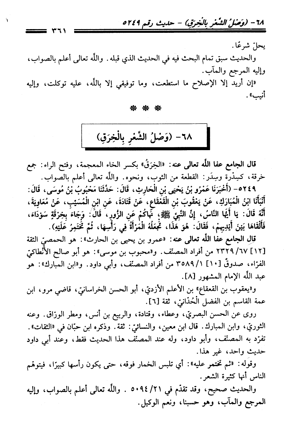 68 - (وَصْلِ الشَّعْرِ بِالْخِرَقِ)
