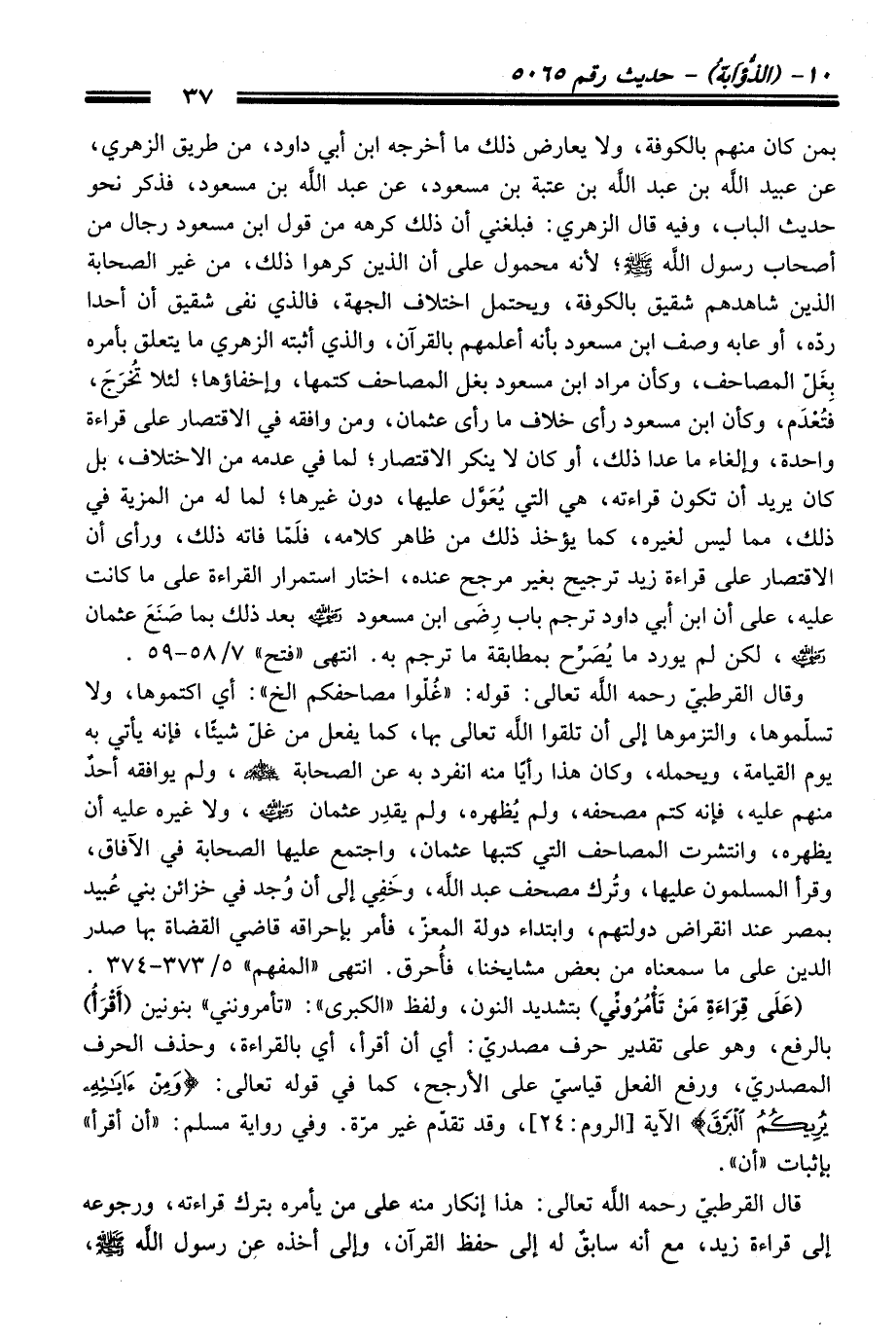 قَالَ القرطبيّ رحمه الله تعالى: هَذَا إنكار منه عَلَى منْ يأمره بترك قراءته، ورجوعه إلى قراءة زيد، مع أنه سابقٌ له إلى حفظ القرآن، وإلى أخذه عن رسول الله -صلى الله عليه وسلم-،