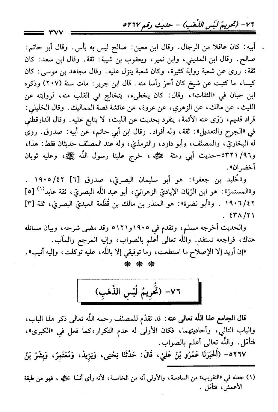 76 - (تَحْرِيمِ لُبْسِ الذَّهَبِ)