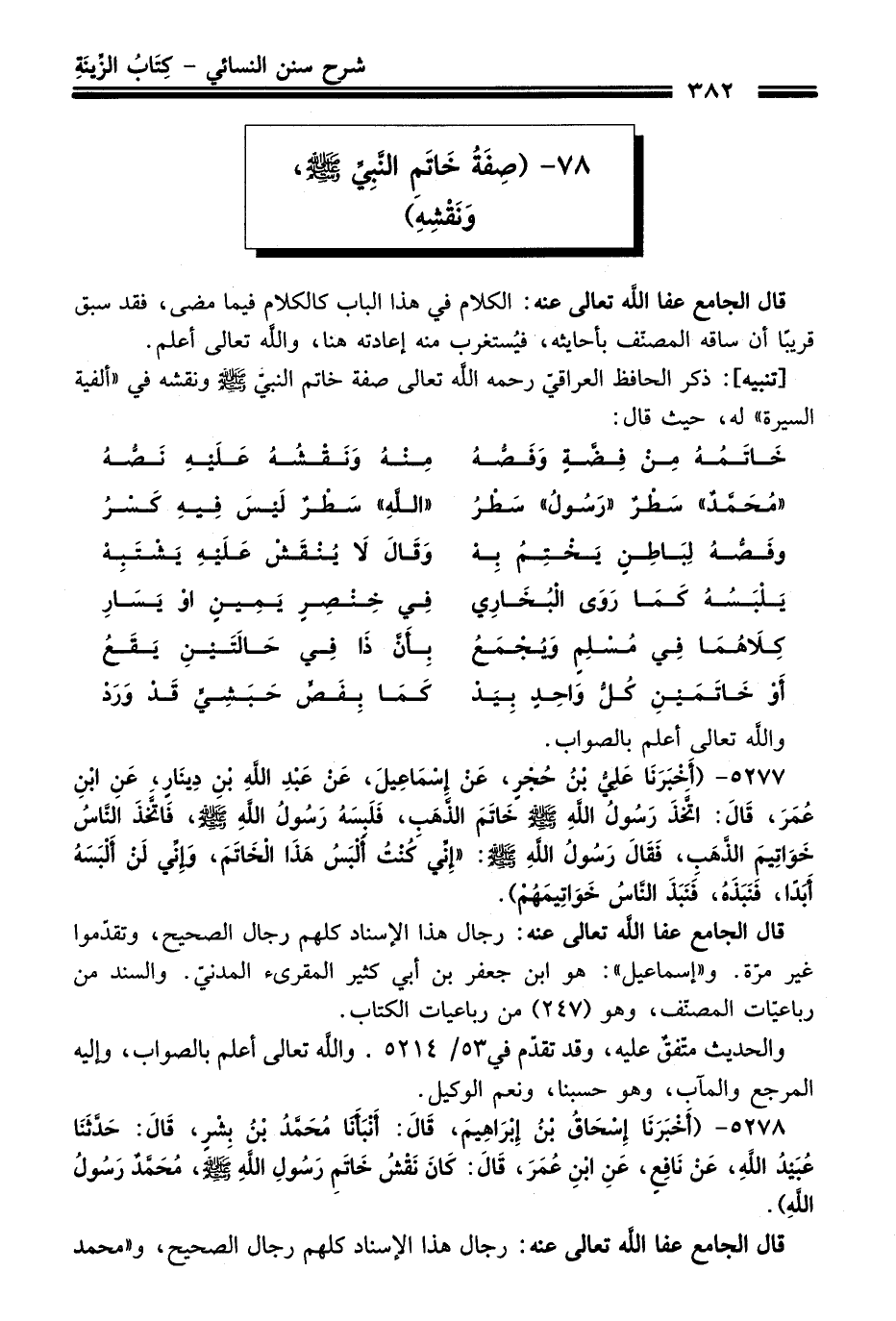 78 - (صِفَةِ خَاتَمِ النَّبِيِّ -صلى الله عليه وسلم- وَنَقْشِهِ)