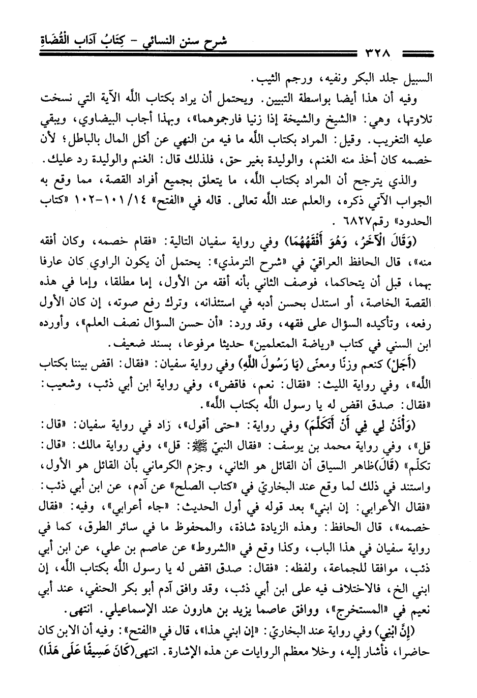 والذي يترجح أن المراد بكتاب الله، ما يتعلق بجميع أفراد القصة، مما وقع به الجواب الآتي ذكره، والعلم عند الله تعالى. قاله فِي "الفتح" 14/ 101 - 102 "كتاب الحدود" رقم 6827.
