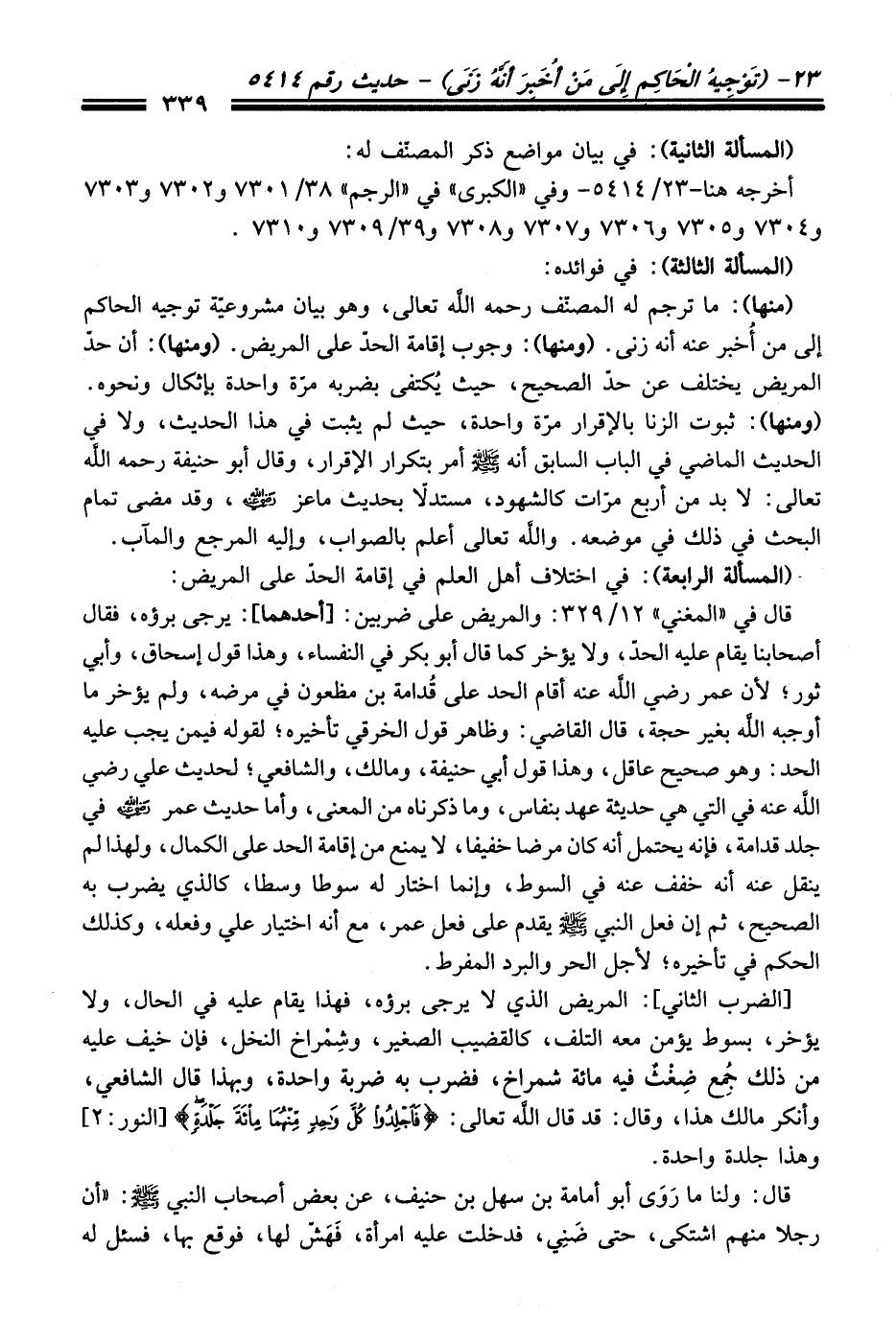 (المسألة الرابعة): فِي اختلاف أهل العلم فِي إقامة الحدّ عَلَى المريض: