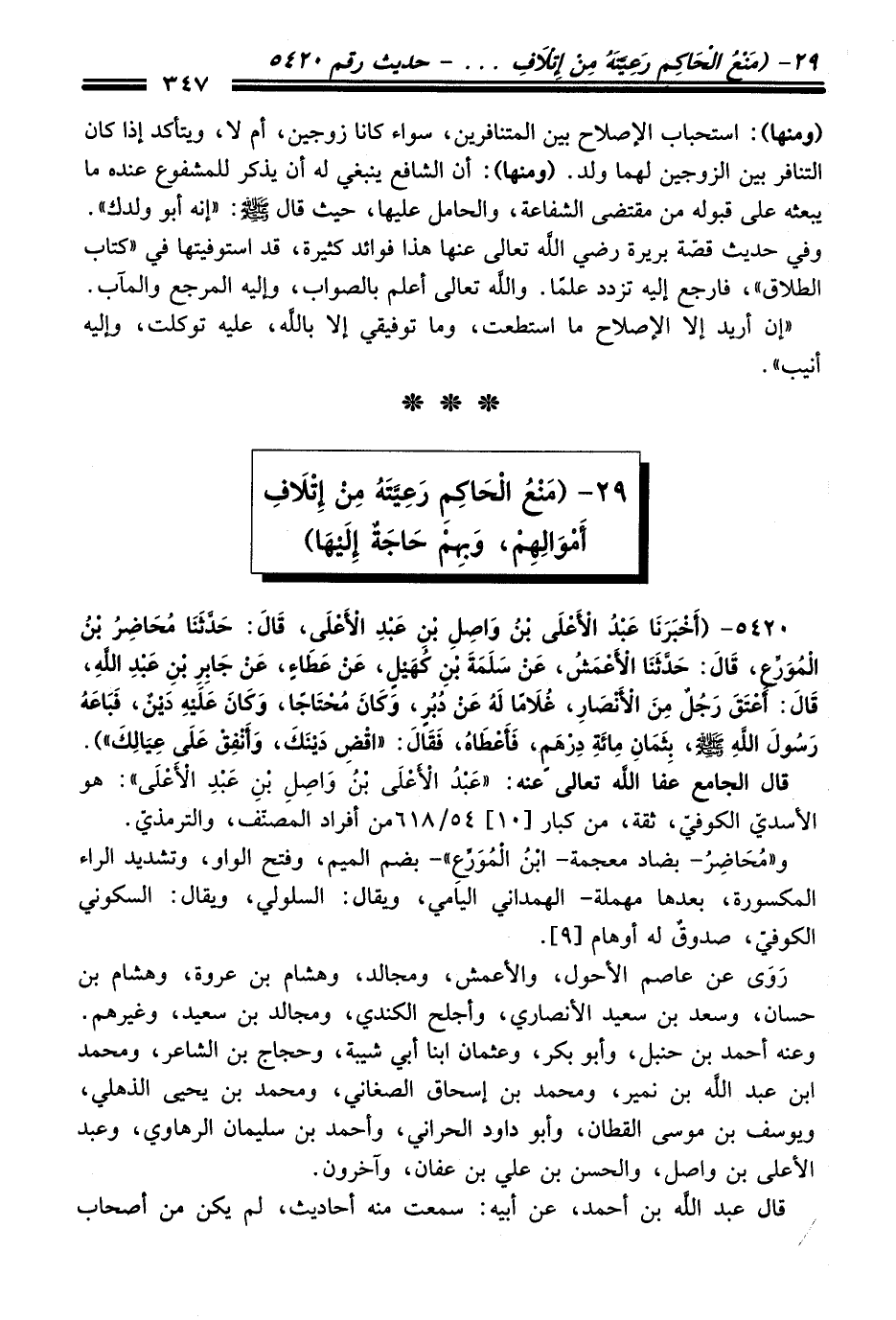 29 - (مَنْعِ الْحَاكِمِ رَعِيَّتَهُ مِنْ إِتْلاَفِ أَمْوَالِهِمْ، وَبِهِمْ حَاجَةٌ إِلَيْهَا)