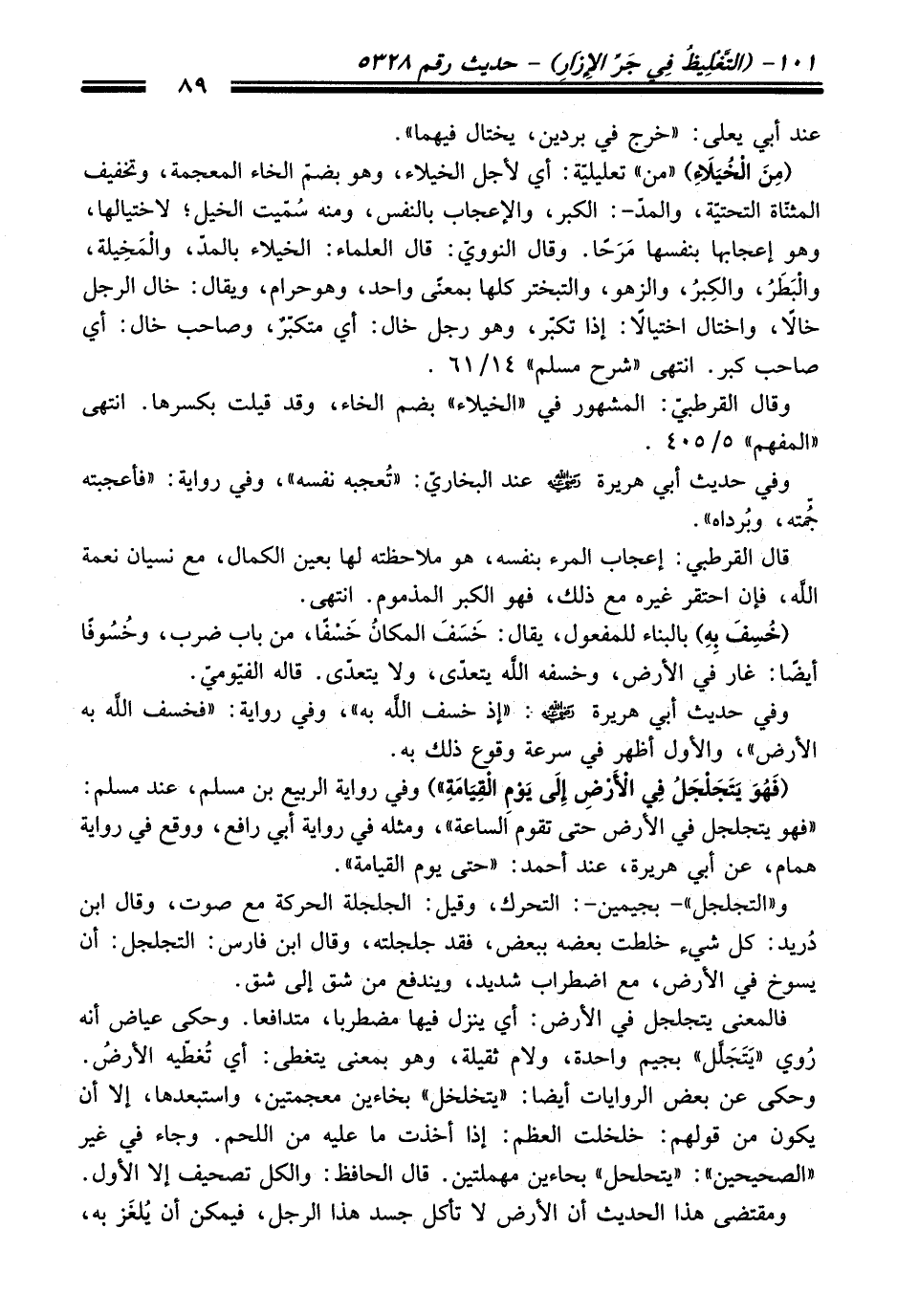 وفي حديث أبي هريرة -رضي الله عنه-: "إذ خسف الله به"، وفي رواية: "فخسف الله به الأرض"، والأول أظهر فِي سرعة وقوع ذلك به.